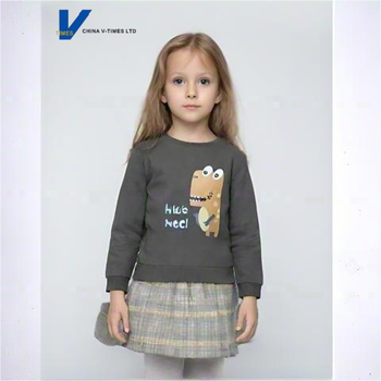 Sudadera de cuello redondo de manga larga de otoño para niñas de tela de algodón/LICRA ecológica con estampado de animales de base gris oscuro