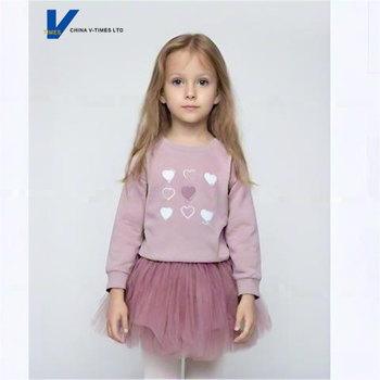 Sweet Heart-Themed Pink Multi-Heart Print 3D Heart Adornado Tulle Falda Hem Design Niñas Primavera-Otoño Vestido de manga larga